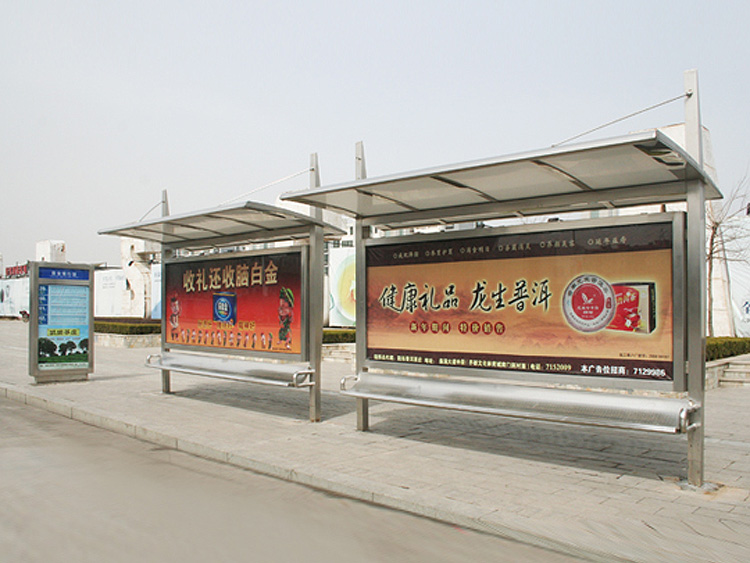 公交車候車亭一般是與公交站牌相配套的,為方便公交乘客候車時遮陽、防雨等,在車站、道路兩旁或綠化帶的港灣式公交停靠站上建設的交通設施。由于城市公交的日益發達,候車亭已發展成為城市一個不可或缺的重要組成部分,設計精美的候車亭也成為了城市一道美麗的風景。 一般候車亭棚體主要頂棚、立柱、頂弓、廣告燈箱和坐凳組成,也有用隔板來代替廣告燈箱的。