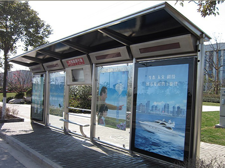 公交車候車亭一般是與公交站牌相配套的,為方便公交乘客候車時遮陽、防雨等,在車站、道路兩旁或綠化帶的港灣式公交停靠站上建設的交通設施。由于城市公交的日益發達,候車亭已發展成為城市一個不可或缺的重要組成部分,設計精美的候車亭也成為了城市一道美麗的風景。 一般候車亭棚體主要頂棚、立柱、頂弓、廣告燈箱和坐凳組成,也有用隔板來代替廣告燈箱的。