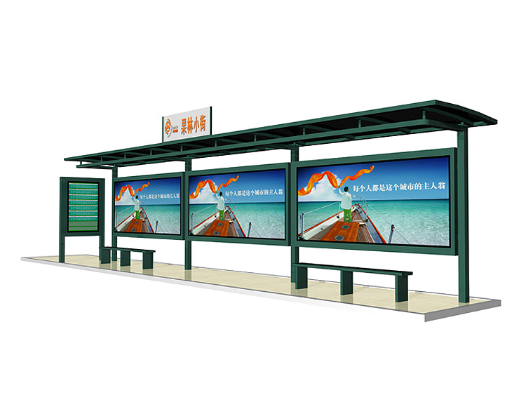 公交車候車亭一般是與公交站牌相配套的,為方便公交乘客候車時(shí)遮陽、防雨等,在車站、道路兩旁或綠化帶的港灣式公交停靠站上建設(shè)的交通設(shè)施。由于城市公交的日益發(fā)達(dá),候車亭已發(fā)展成為城市一個(gè)不可或缺的重要組成部分,設(shè)計(jì)精美的候車亭也成為了城市一道美麗的風(fēng)景。 一般候車亭棚體主要頂棚、立柱、頂弓、廣告燈箱和坐凳組成,也有用隔板來代替廣告燈箱的。