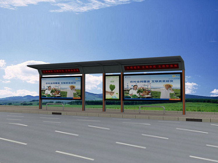 公交車候車亭一般是與公交站牌相配套的,為方便公交乘客候車時遮陽、防雨等,在車站、道路兩旁或綠化帶的港灣式公交停靠站上建設(shè)的交通設(shè)施。由于城市公交的日益發(fā)達,候車亭已發(fā)展成為城市一個不可或缺的重要組成部分,設(shè)計精美的候車亭也成為了城市一道美麗的風(fēng)景。 一般候車亭棚體主要頂棚、立柱、頂弓、廣告燈箱和坐凳組成,也有用隔板來代替廣告燈箱的。