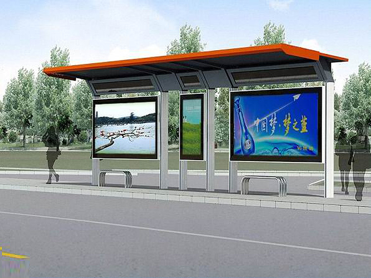 公交車候車亭一般是與公交站牌相配套的,為方便公交乘客候車時遮陽、防雨等,在車站、道路兩旁或綠化帶的港灣式公交?空旧辖ㄔO的交通設施。由于城市公交的日益發達,候車亭已發展成為城市一個不可或缺的重要組成部分,設計精美的候車亭也成為了城市一道美麗的風景。 一般候車亭棚體主要頂棚、立柱、頂弓、廣告燈箱和坐凳組成,也有用隔板來代替廣告燈箱的。