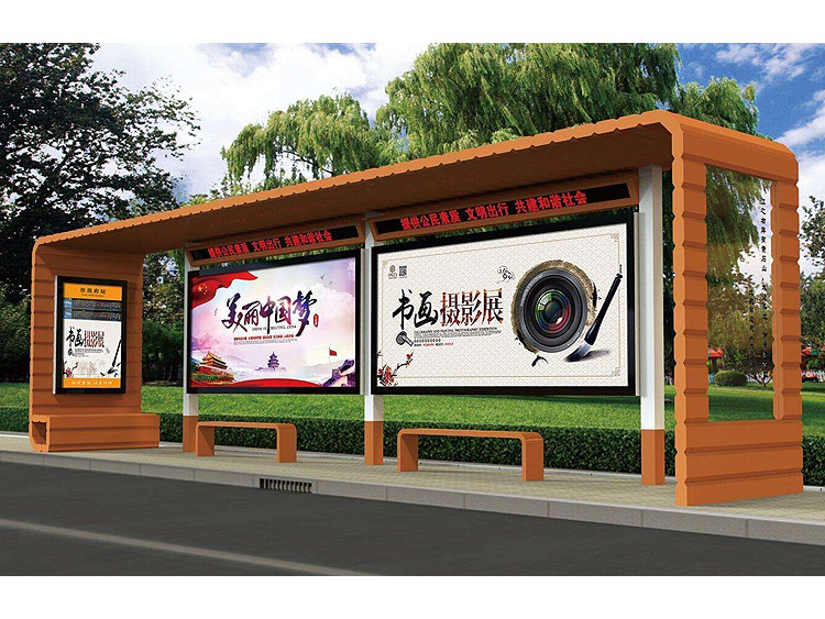 公交車候車亭一般是與公交站牌相配套的,為方便公交乘客候車時遮陽、防雨等,在車站、道路兩旁或綠化帶的港灣式公交停靠站上建設的交通設施。由于城市公交的日益發達,候車亭已發展成為城市一個不可或缺的重要組成部分,設計精美的候車亭也成為了城市一道美麗的風景。 一般候車亭棚體主要頂棚、立柱、頂弓、廣告燈箱和坐凳組成,也有用隔板來代替廣告燈箱的。